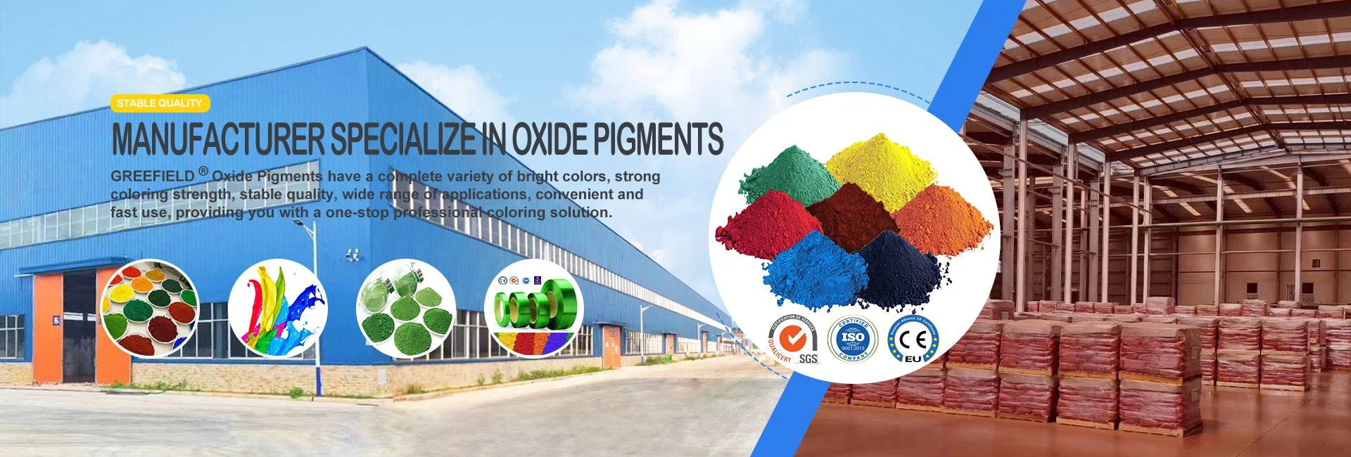- Nasze syntetyczne pigmenty tlenkowe, w tym szeroka gama syntetycznych tlenków żelaza (czerwony, żółty, czarny, brązowy, pomarańczowy, beżowy i złożony zielony, niebieski, fioletowy);